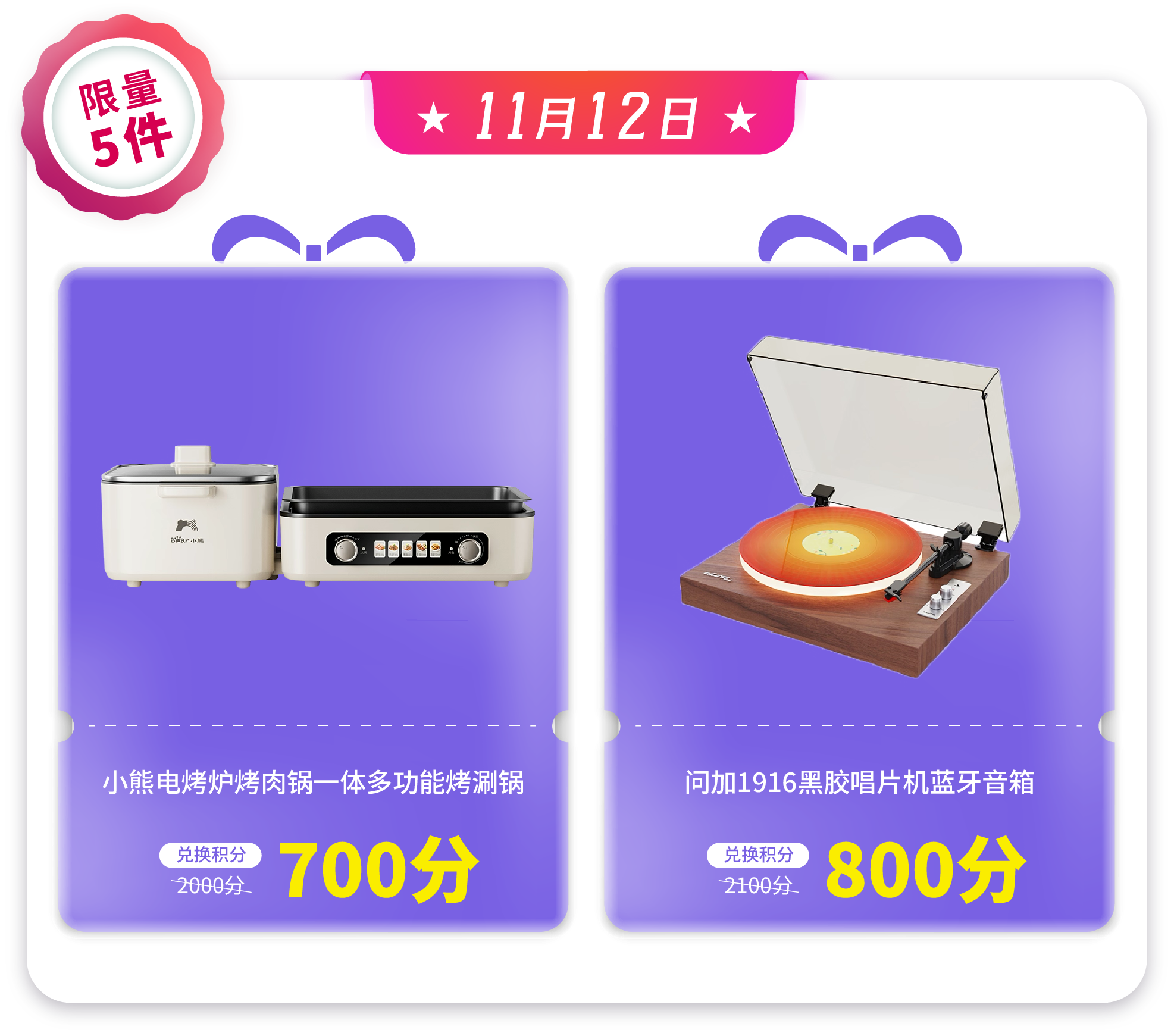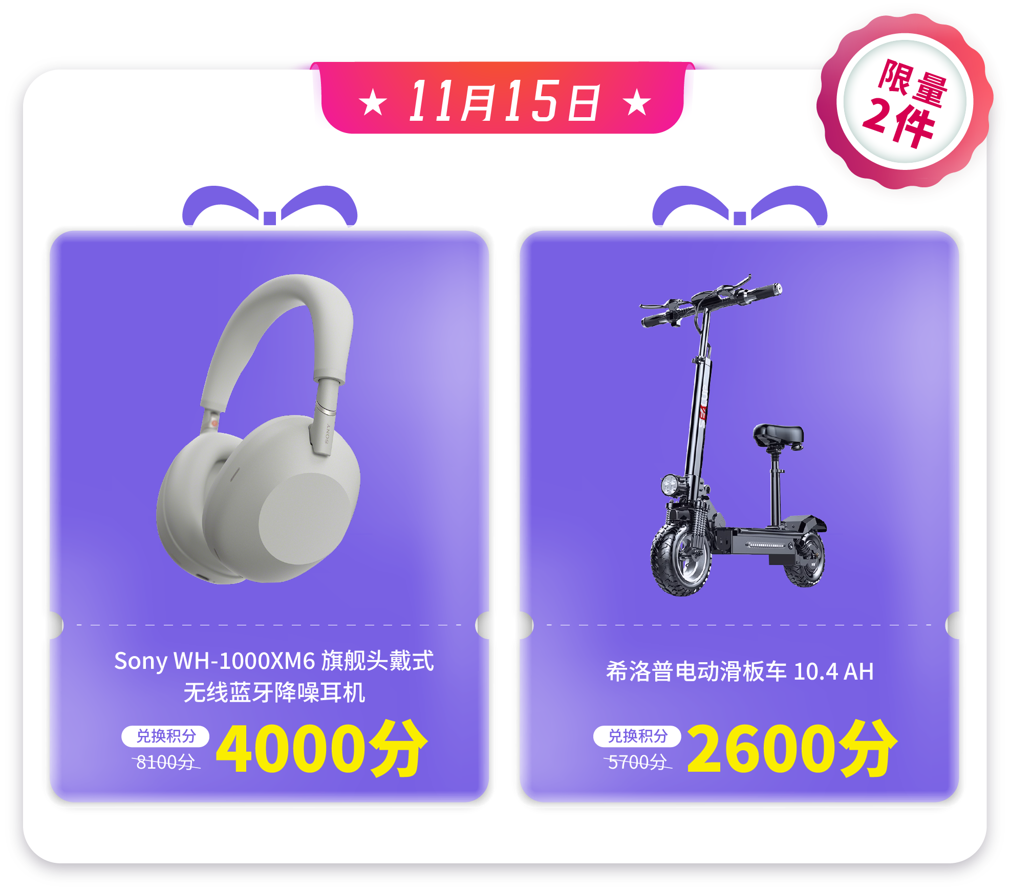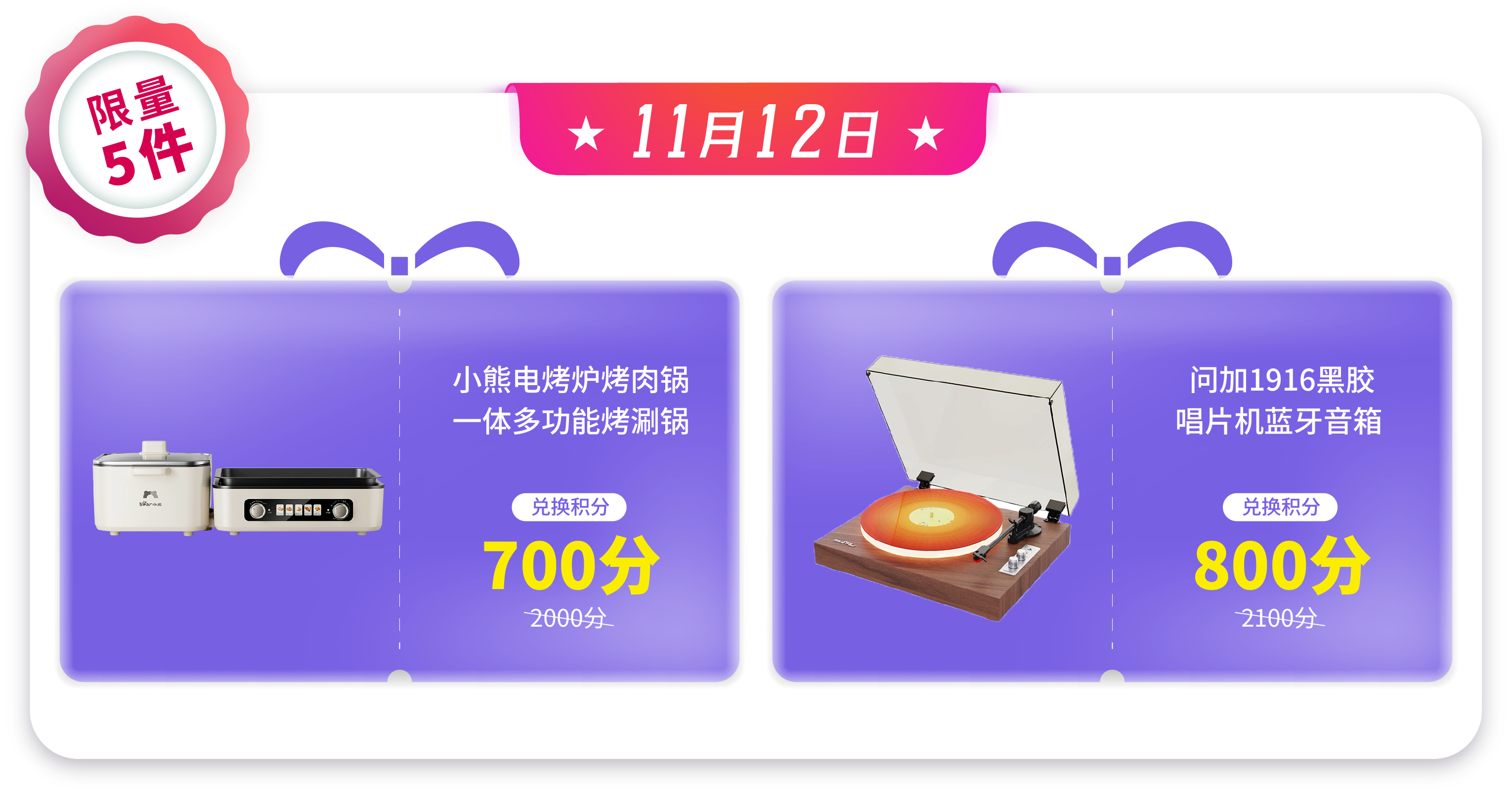 亨达积分商城今年双11特别推出「双11亨达商城狂欢节」活动,为您精选多款商品。 从11月11日至17日,限时7天,每天正午12时将发布2款精选商品,享受低至三折的优惠!