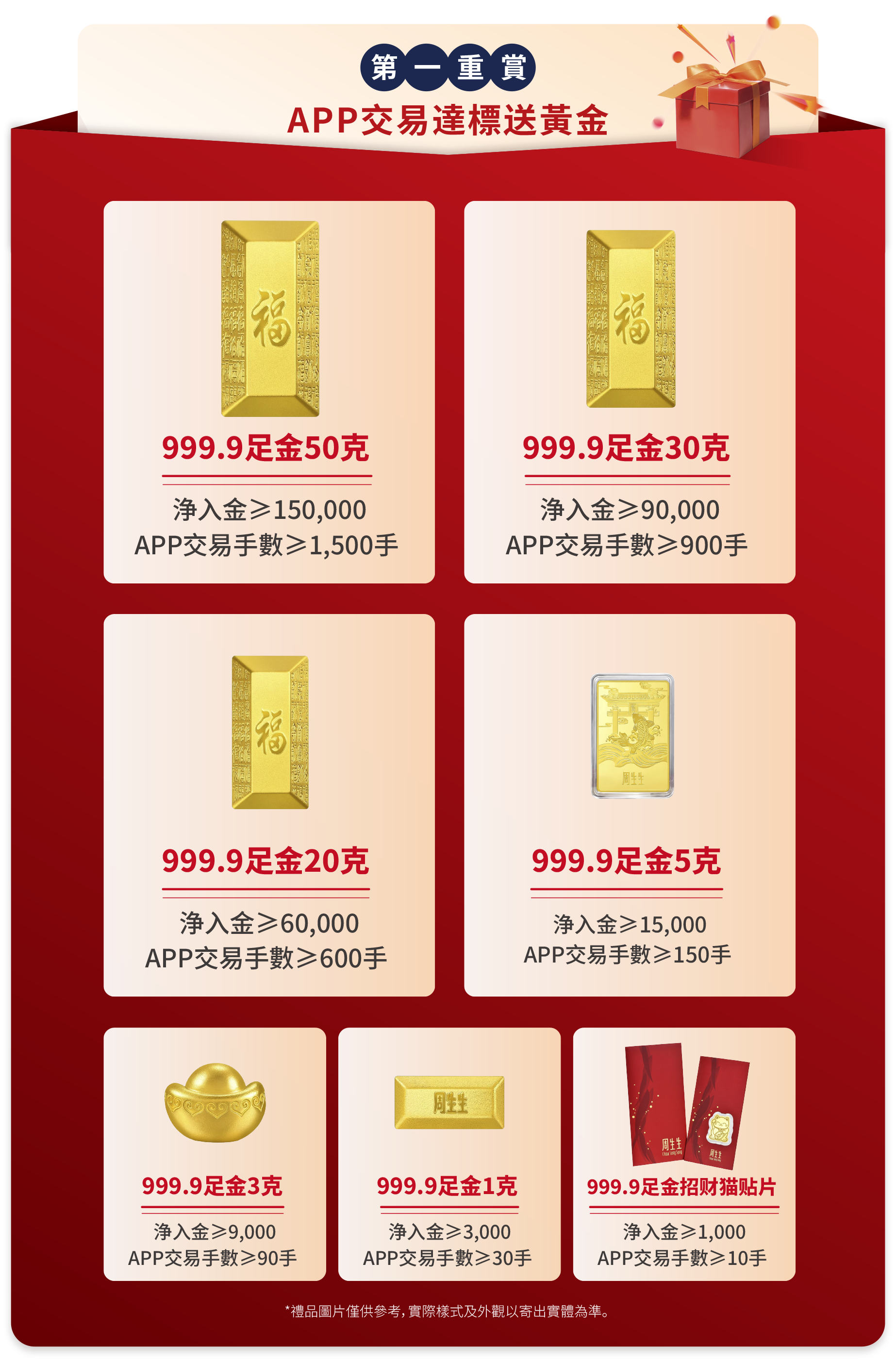 ★ 第一重賞:根據客戶淨入金及APP交易平倉手數獲得相應獎品。